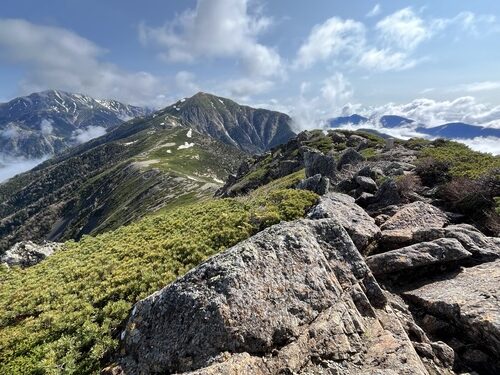 椹島~笊ケ岳の登山道を点検してきました。 看板の設置状況や危険箇所の状況を調査しました。 崩壊地を横断する区間もあり、慎重に登りました。 報告者:梶田レンジャー